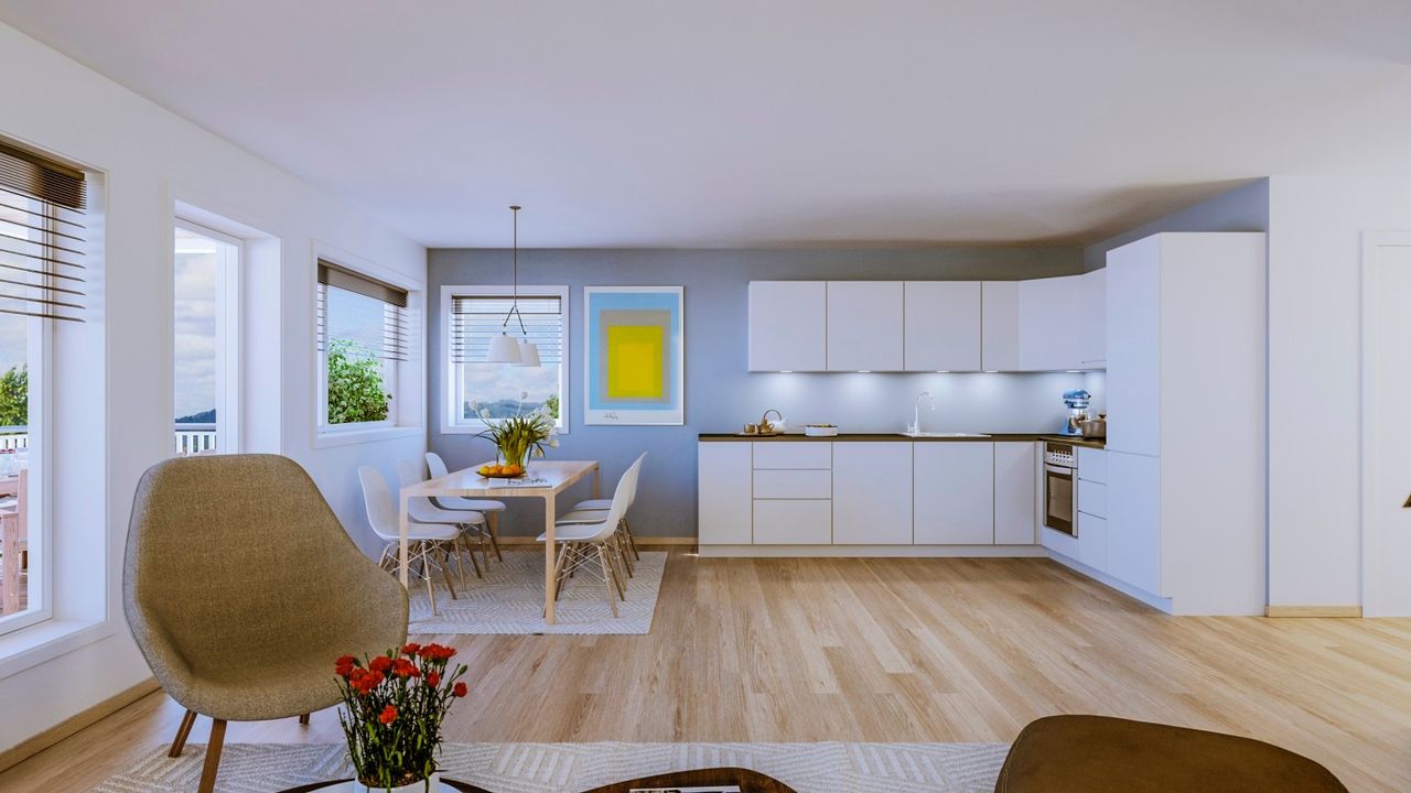 I tillegg til å friste med flott utsikt har vi også tenkt på det praktiske, slik at boligene fungerer optimalt for alle beboerne – uansett alder. Vi har derfor lagt vekt på gode planløsninger som skaper en praktisk hverdag i boligen. Her får du alt på et plan, carport, romslig bod og heis. Enhetene har et areal på 78 m2 BRA og leveres fra 2 730 000 kr.